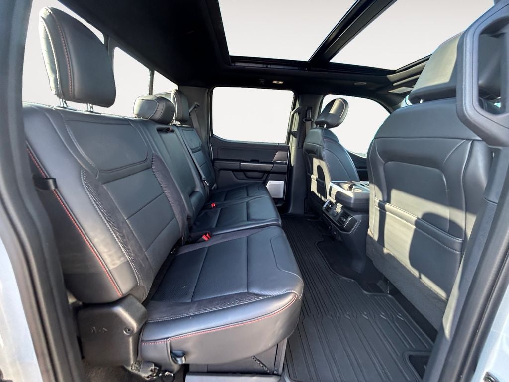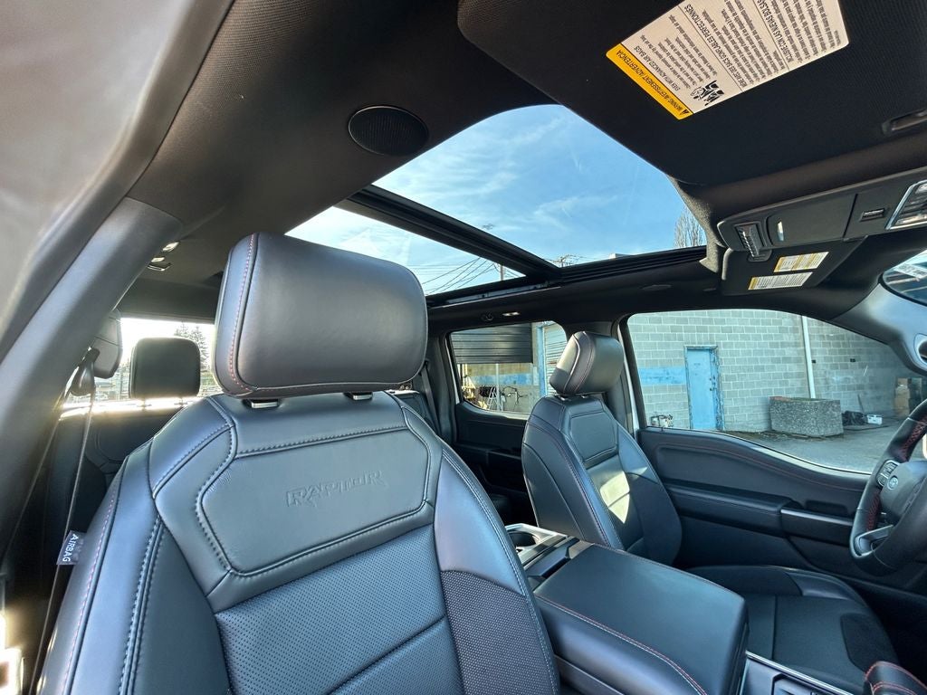Step inside and be captivated by the Raptor's premium cabin, featuring luxurious leather-trimmed seats, a stunning B&O Unleashed Sound System, and a Heads-Up Display that keeps vital information at your fingertips. The Twin Panel Moonroof floods the interior with natural light, creating a spacious and airy atmosphere.