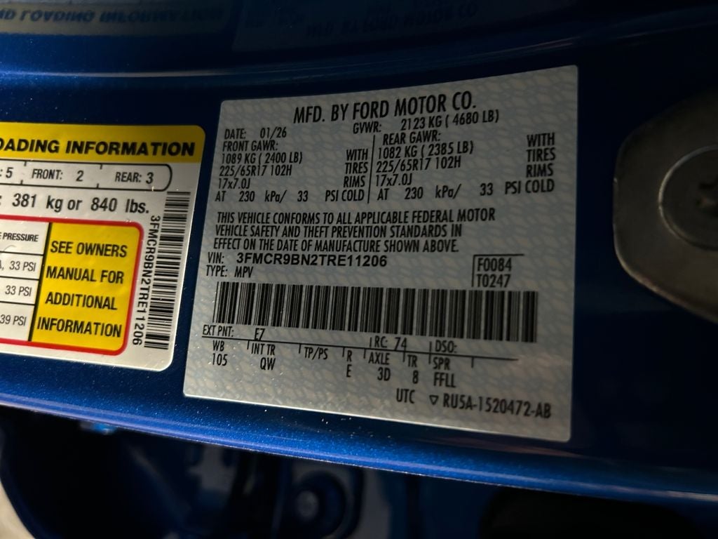 Step inside and you'll be greeted by a host of advanced features that elevate your driving experience, such as SYNC 4 with Enhanced Voice Recognition, a 400W Pro Power Onboard system, and a premium wrapped steering wheel. Stay connected with Apple CarPlay and Android Auto, while the rear parking sensors and backup camera provide added peace of mind.