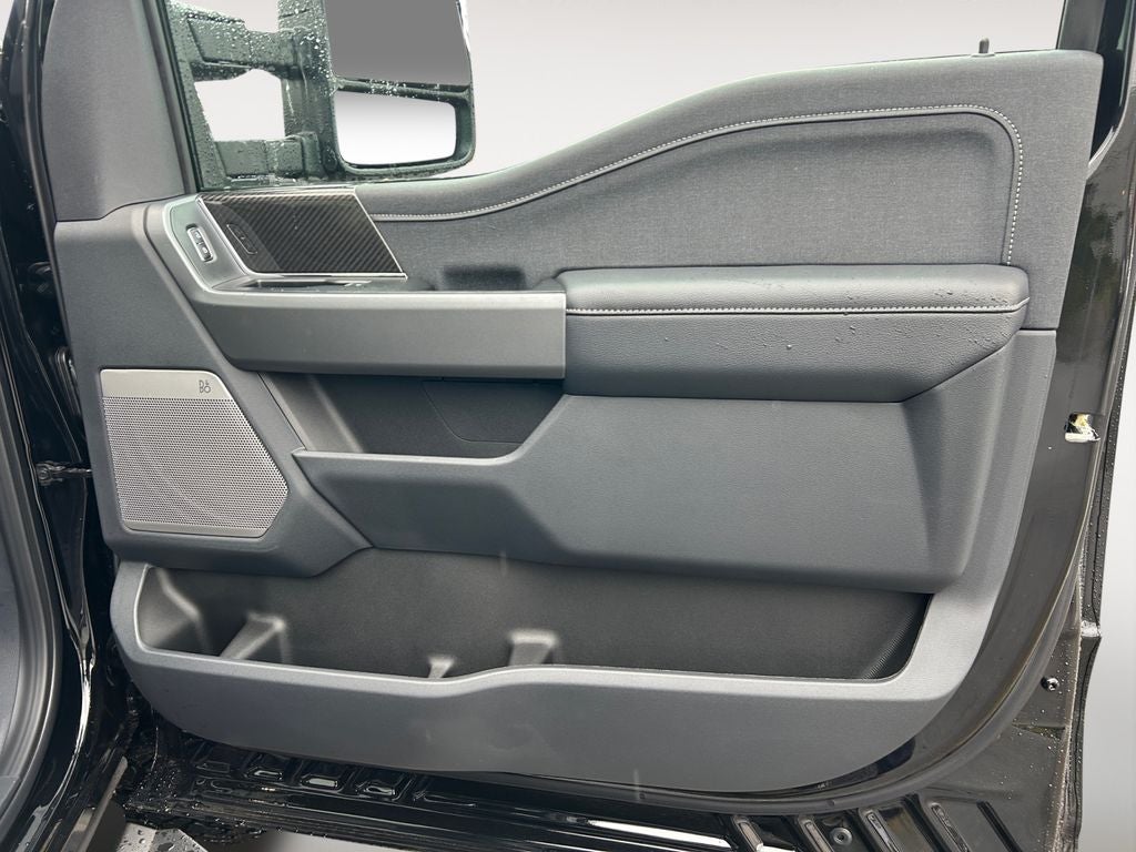 This F-350SD is not just a workhorse; it's a true expression of refined style. The exterior boasts a bold, Black color scheme that commands attention, complemented by 18-inch bright machined and carbonized gray aluminum wheels. The chrome bumpers and turn signal indicator mirrors add a touch of elegance, while the privacy glass and rain-sensing wipers ensure a smooth and comfortable ride in any weather.