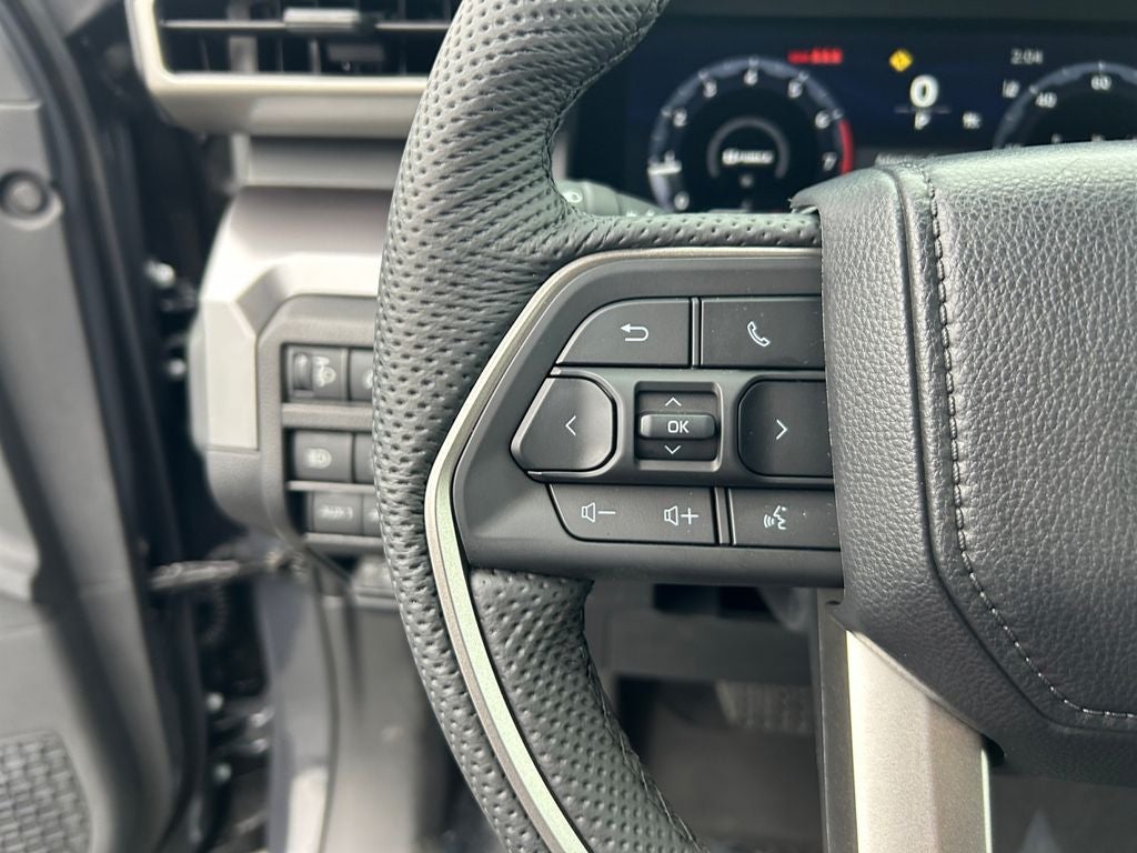 - Leather-trimmed manual tilt/telescopic steering wheel with phone, audio, display/infotainment, and Driver Assist controls