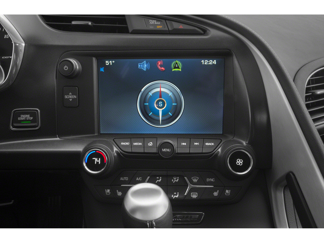 Safety is paramount in the Corvette Stingray, with features like Dual Front Impact Airbags, Dual Front Side Impact Airbags, and the OnStar Directions & Connections Emergency Communication System ensuring your peace of mind.