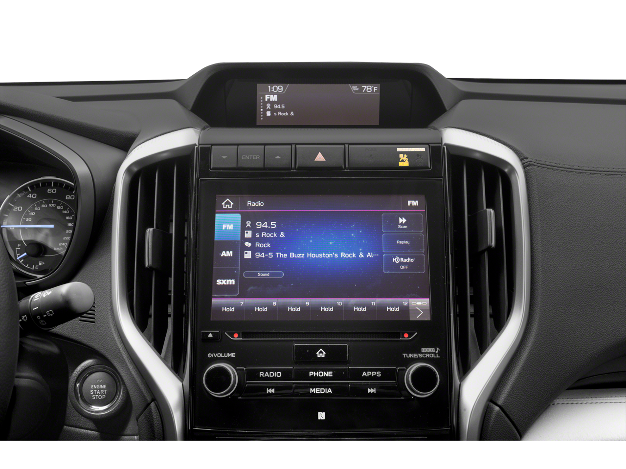 - Radio: Subaru STARLINK 8.0" Multimedia Plus System -inc: AM/FM stereo HD Radio w/single disc CD player, MP3/WMA/CRR/RW file capability, multi-touch gesture high resolution LCD display screen, voice activated controls, Bluetooth audio streaming connectivity, Bluetooth hands-free phone connectivity, Bluetooth hands-free SMS text messaging connectivity (applicable w/compatible cell phone), Near Field Communication (NFC), iPod control capability, SiriusXM All Access radio (subscription required), SiriusXM Travel Link (subscription required), smartphone integration for Aha, Android Auto, CarPlay and Pandora, STARLINK cloud applications, steering wheel controls for audio and Bluetooth, 6 speakers, 3.5mm auxiliary input jack and front, second and third row dual USB ports