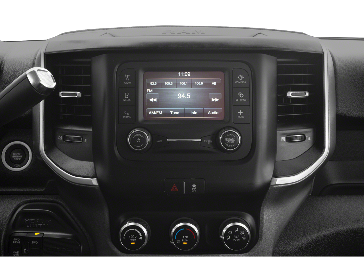 The interior of this Big Horn model sets a new standard for comfort and convenience. Enjoy the benefits of dual-zone climate control, a 7 color driver information display, and a full-length center console with ample storage. The premium cloth bucket seats provide exceptional support, while the 60/40 split-folding rear bench offers versatility for both passengers and cargo.