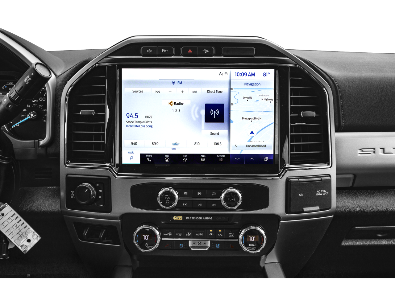 Indulge in the ultimate in comfort and convenience with the Lariat's luxurious interior. Sink into the power-adjustable, heated, and ventilated front seats, surrounded by premium leather upholstery and the rich sound of the B&O Sound System by Bang & Olufsen. Stay connected with the cutting-edge SYNC 4 infotainment system, complete with enhanced voice recognition and seamless integration.
