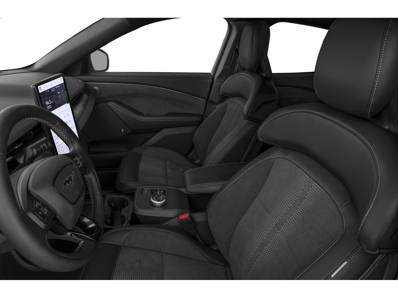 The Mustang Mach-E GT's interior is a masterclass in modern luxury and technology. Sink into the heated ActiveX Sport Seats and enjoy the convenience of the SYNC 4A system with enhanced voice recognition, Apple CarPlay, and Android Auto integration. Stay connected and entertained on the go, while the available 911 Assist feature provides added peace of mind.