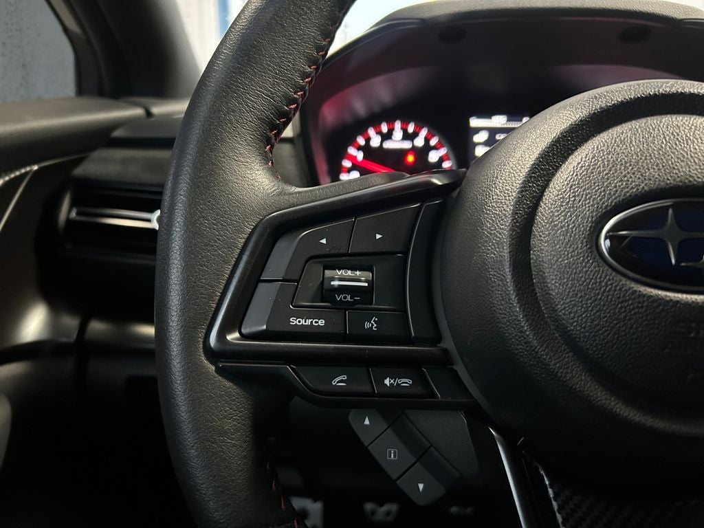 The WRX TR's striking silver exterior exudes confidence, while the interior is adorned with luxurious Ultrasuede & Leather-Trimmed Seats with Red Stitching, offering exceptional comfort and style. Enjoy the convenience of the STARLINK 11.6 Multimedia Plus System, featuring seamless integration with Apple CarPlay and Android Auto.