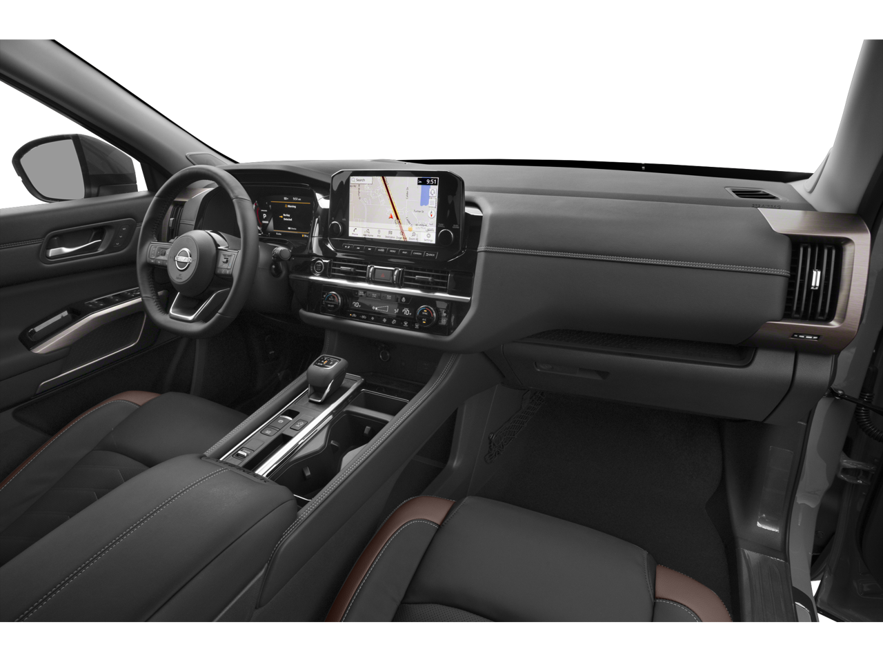 Climb inside the Pathfinder Platinum and experience the epitome of luxury. The spacious, leather-appointed interior features heated and ventilated front seats, a heated steering wheel, and a power liftgate for effortless access to the generous cargo area. The Heads-Up Display and 13-speaker Bose audio system elevate the driving experience, while the advanced safety features, including Nissan Intelligent Mobility technologies, provide peace of mind on every journey.