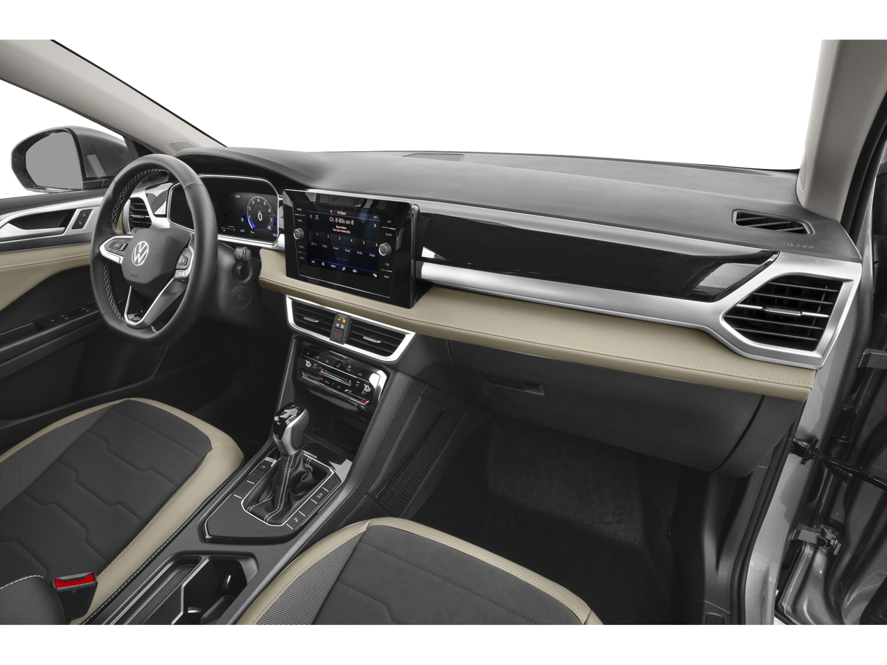 Slip into the plush, heated front bucket seats and enjoy the convenience of the power driver's seat, steering wheel-mounted audio controls, and dual-zone automatic climate control. The Taos also boasts a panoramic sunroof, a rear-view camera, and a premium audio system to enhance your daily commute or weekend adventures.